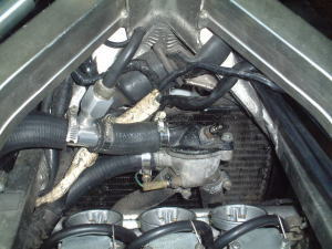 右側のラジエターホースはCBR250RRの物を