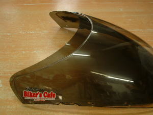 「ZERO-GRAVITY」製は下の写真でもわかる通り、純正より、TOPの前後長が長いです。また、カウルに取り付けた際、地面からスクリーン最高部までの高さが少し高くなります。おかげでウンドプロテクション効果が上がり、高速走行や雨天時には効果を発揮してくれますね。クリアーも有ります。スモークはメーター周りの日焼け防止やサビ隠しにも効果が期待出来ます。重量は純正530gに対しゼログラは340g。